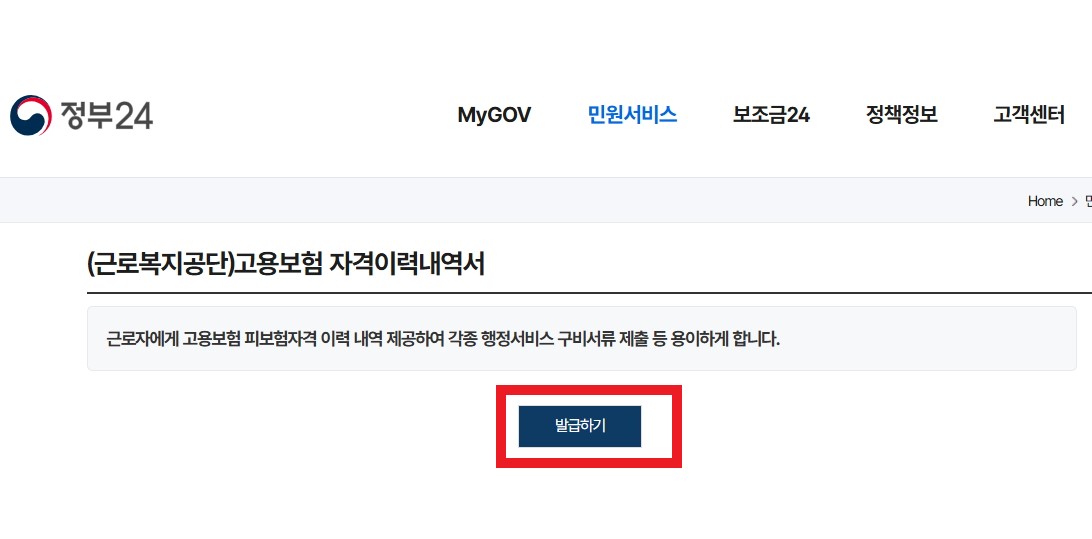 3. 고용보험에 가입된 이력이 있어야만 발급이 가능합니다.