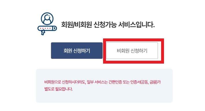 3. 비회원 신청하기를 클릭하고 간편 로그인을 합니다.