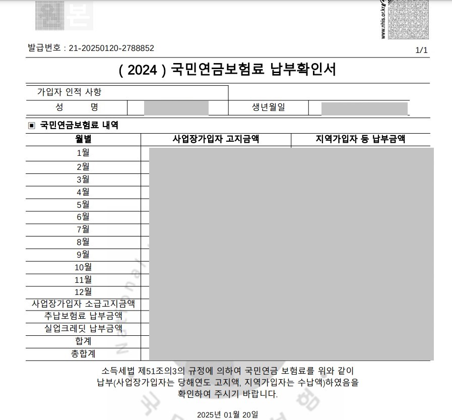 6. 국민연금 납부확인서를 확인합니다.