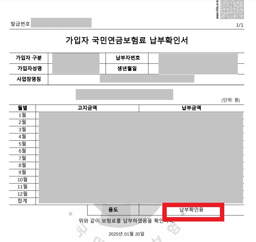 6. 국민연금 납부확인서를 확인합니다.