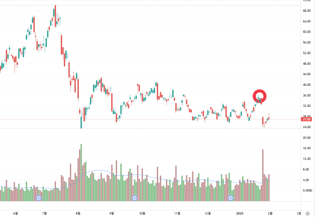 이러한 딥시크의 등장은 엔비디아 주가에 직격탄을 날렸습니다. 2025년 1월 27일, 엔비디아 주가는 16.97% 폭락하며 사상 최대 규모의 하락을 기록했고, 시가총액 약 5,890억 달러가 증발하는 등 시장에 큰 충격을 주었습니다.