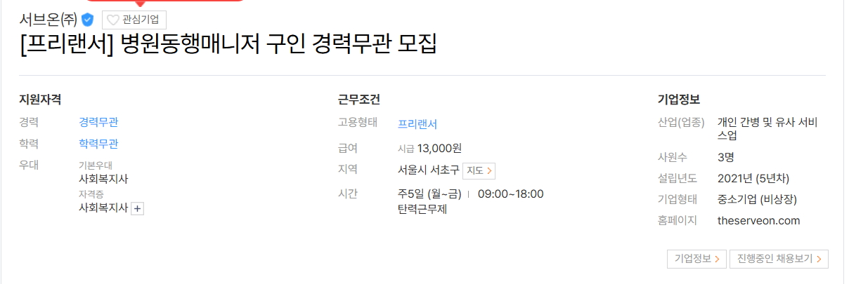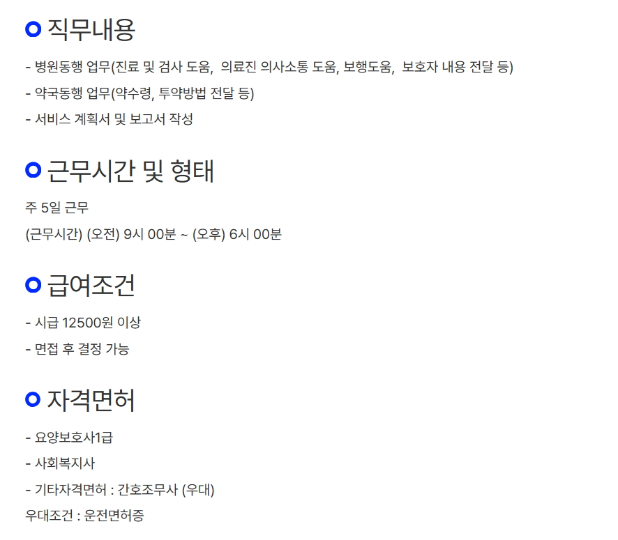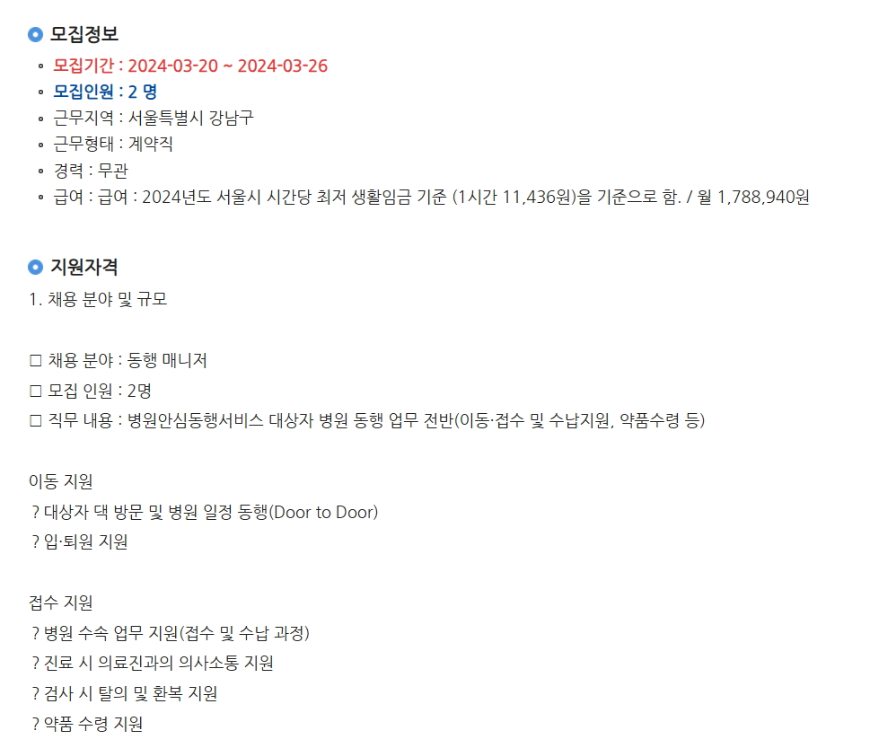 병원동행매니저 일자리 정보
