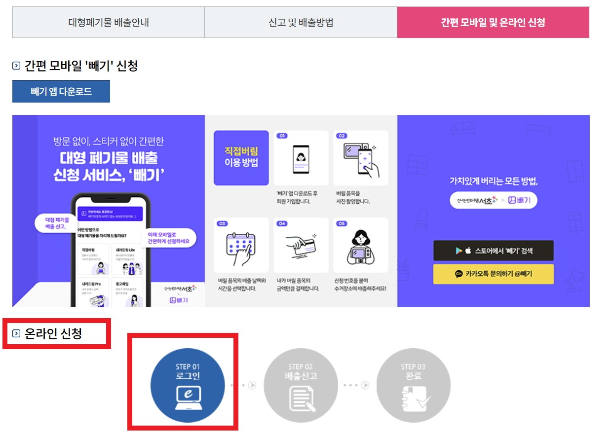 - 모바일 앱(빼기) 사용 시: 스티커 없이 앱에서 배출 신청 후 배출하면 됩니다.