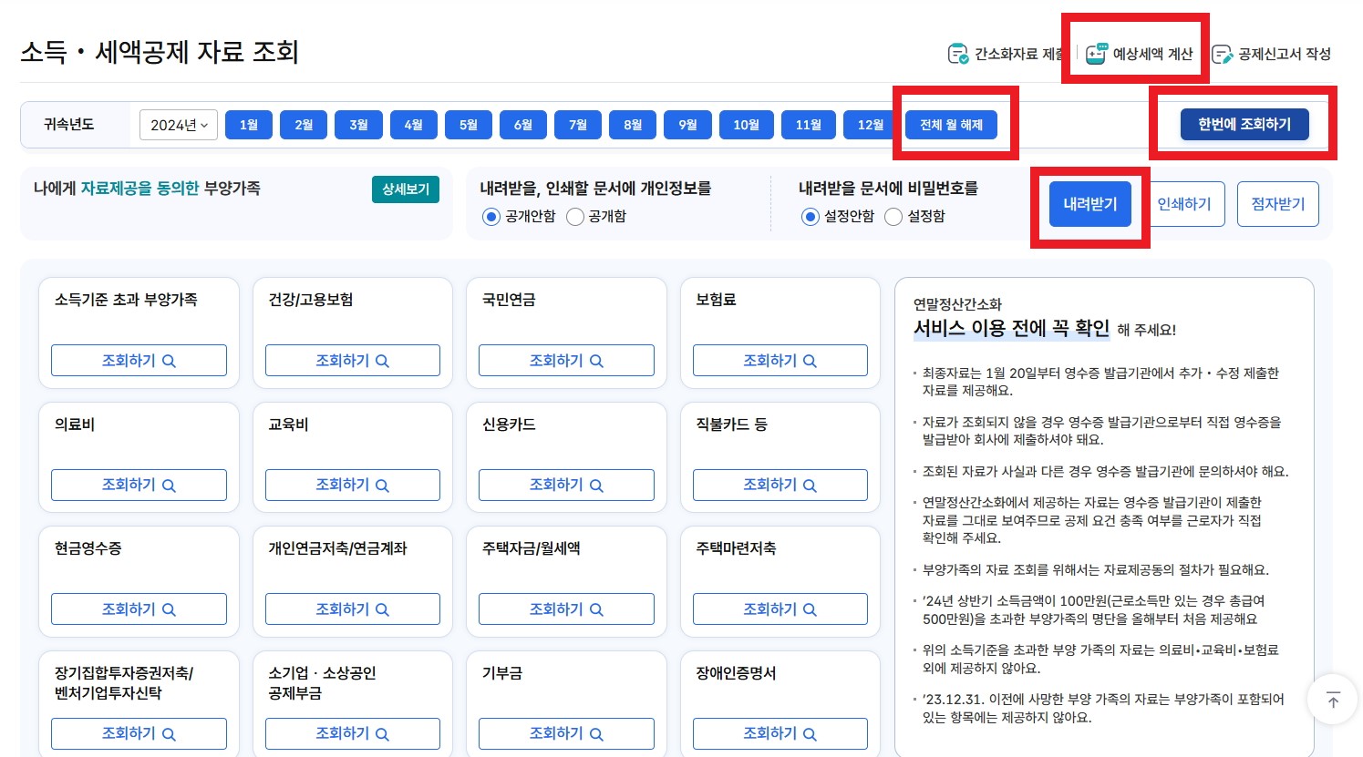 - "My홈택스" → "연말정산 결과 조회" 메뉴에서 예상 환급금과 납부 세액을 확인하세요.