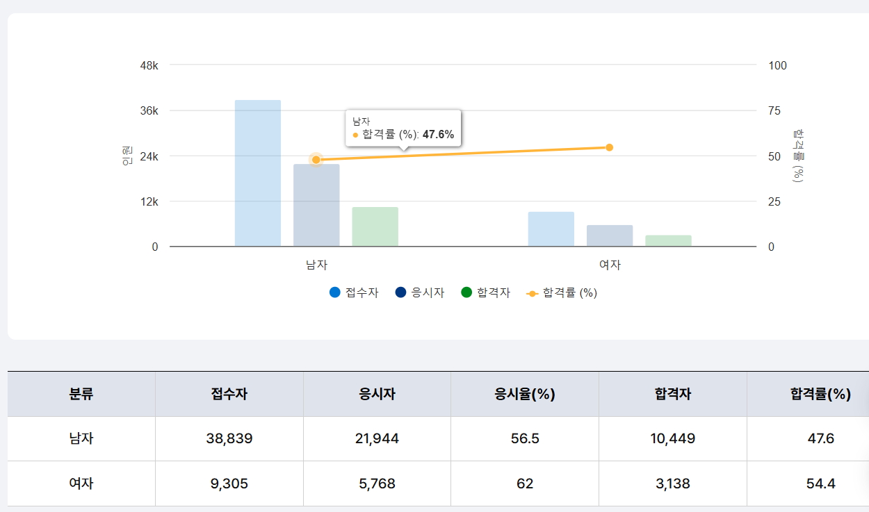 합격률은 약 필기 40~55%, 실기 45~55%수준입니다.