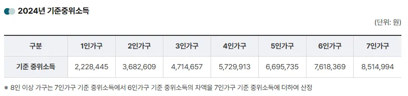 - 부양의무자(가구)의 소득이 기준 중위소득의 100% 미만이고