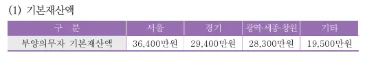 서울 3억 6,400만원, 경기: 2억 9,400만원, 광역시, 세종시, 창원시: 2억 8,300만원, 그 외 지역: 1억 9,500만원