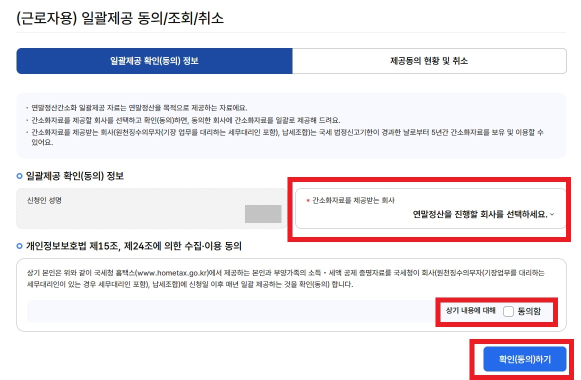 3. 연말정산 자료 일괄제공 동의하기