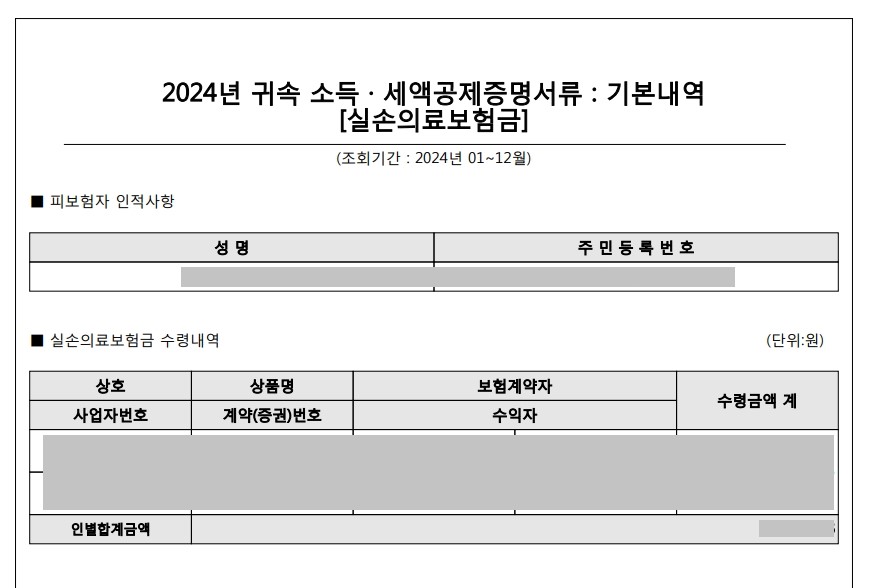 - 다. 실손의료보험금만큼 의료비 공제 대상액에서 제외되므로 반드시 체크해줍니다.