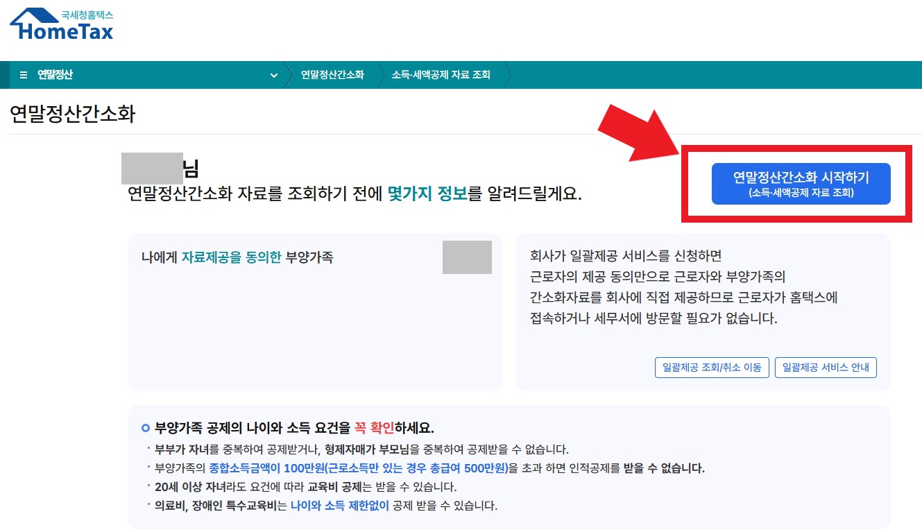 또는 나의 공제 내역을 확인하고 싶거나, 어느쪽으로 부양가족을 올릴지 결정하기 전에 내역을 확인하기 위해 연말정산 간소화 서비스의 내역을 확인해야 할 수 있습니다.