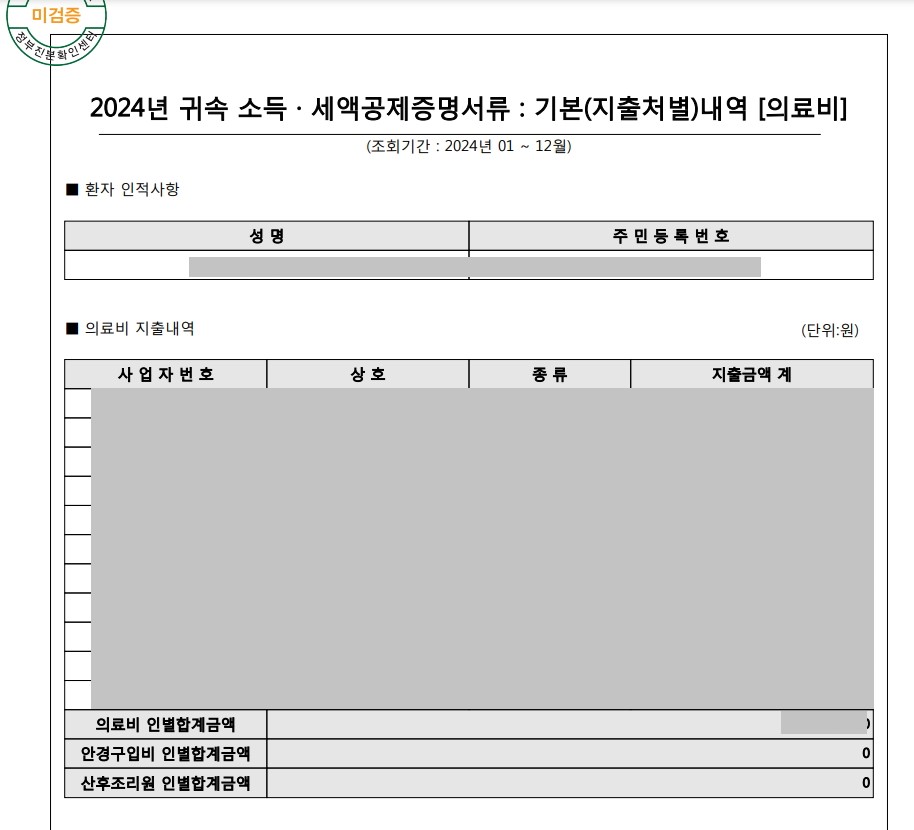 산후조리원 영수증, 장애인 보장구 구입 영수증 등 간소화 서비스에 누락된 자료는 직접 영수증을 준비해야 합니다.