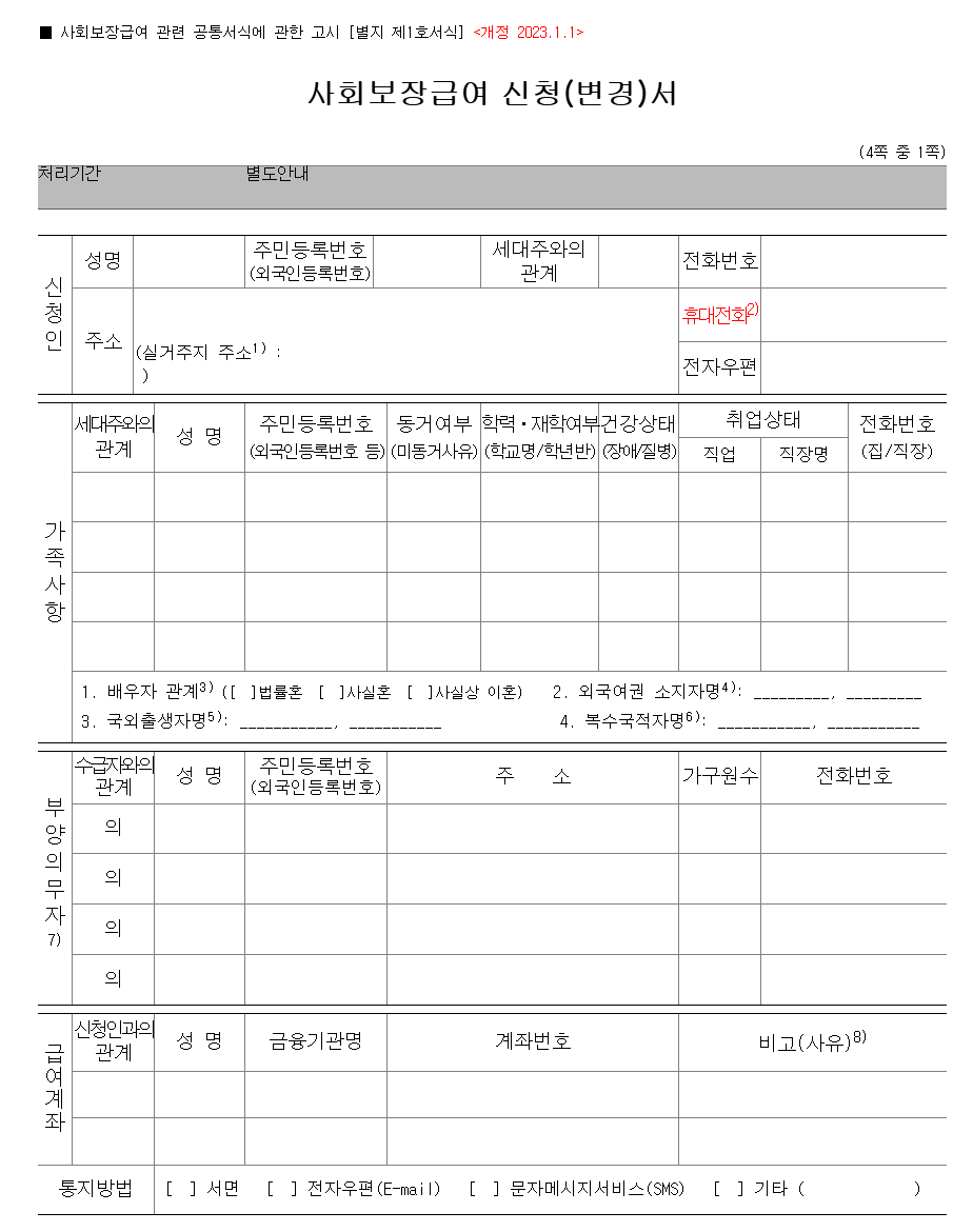 - 사회복지서비스 신청서: 장애수당 신청을 위한 기본 서류입니다.