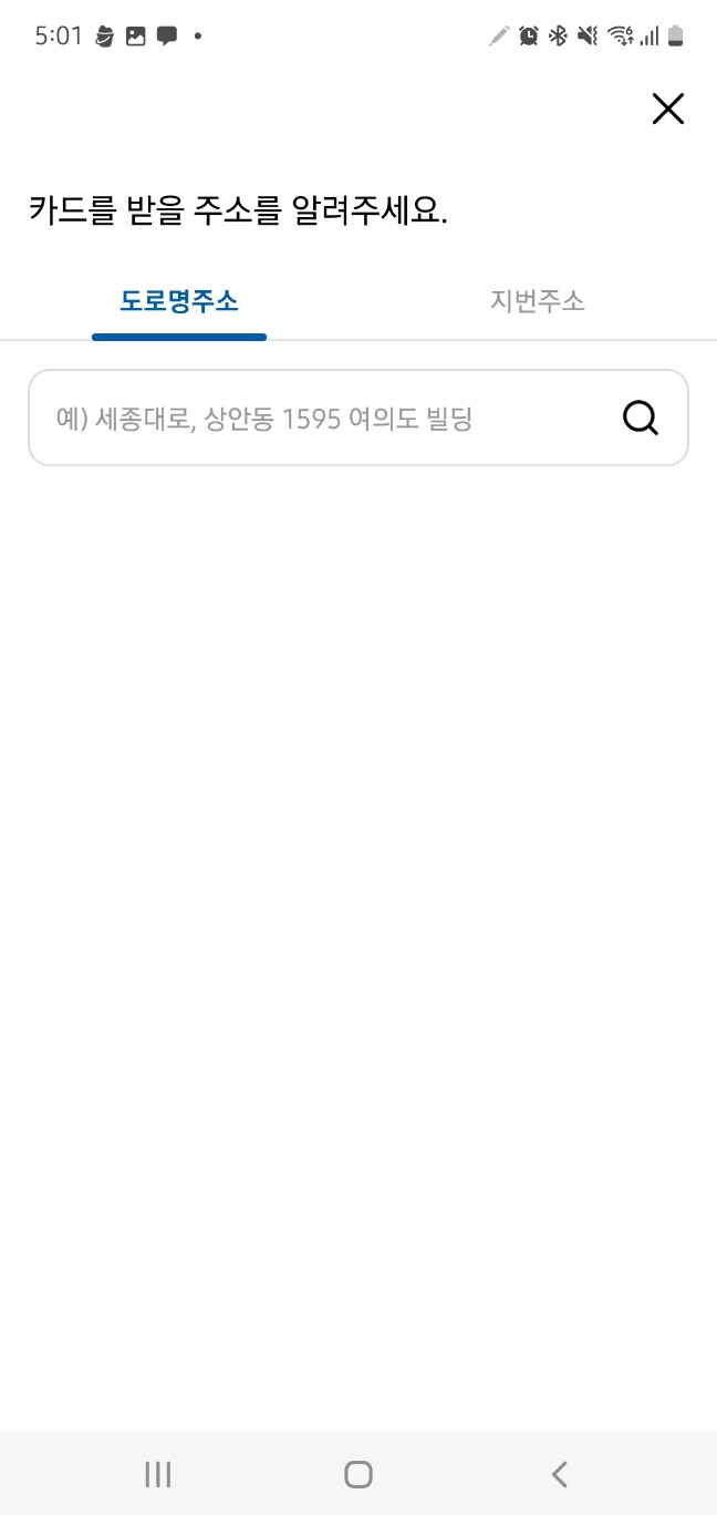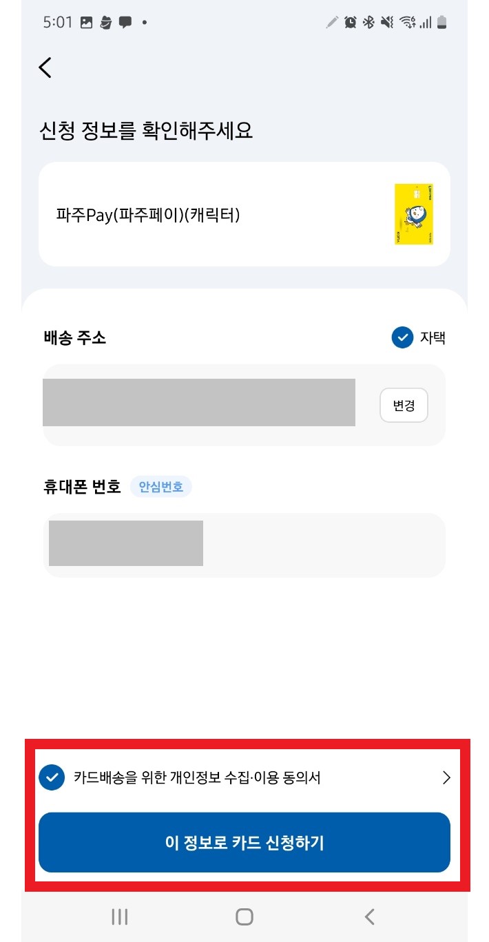 4. 카드를 받을 주소를 입력하고 '카드 신청하기' 클릭합니다.