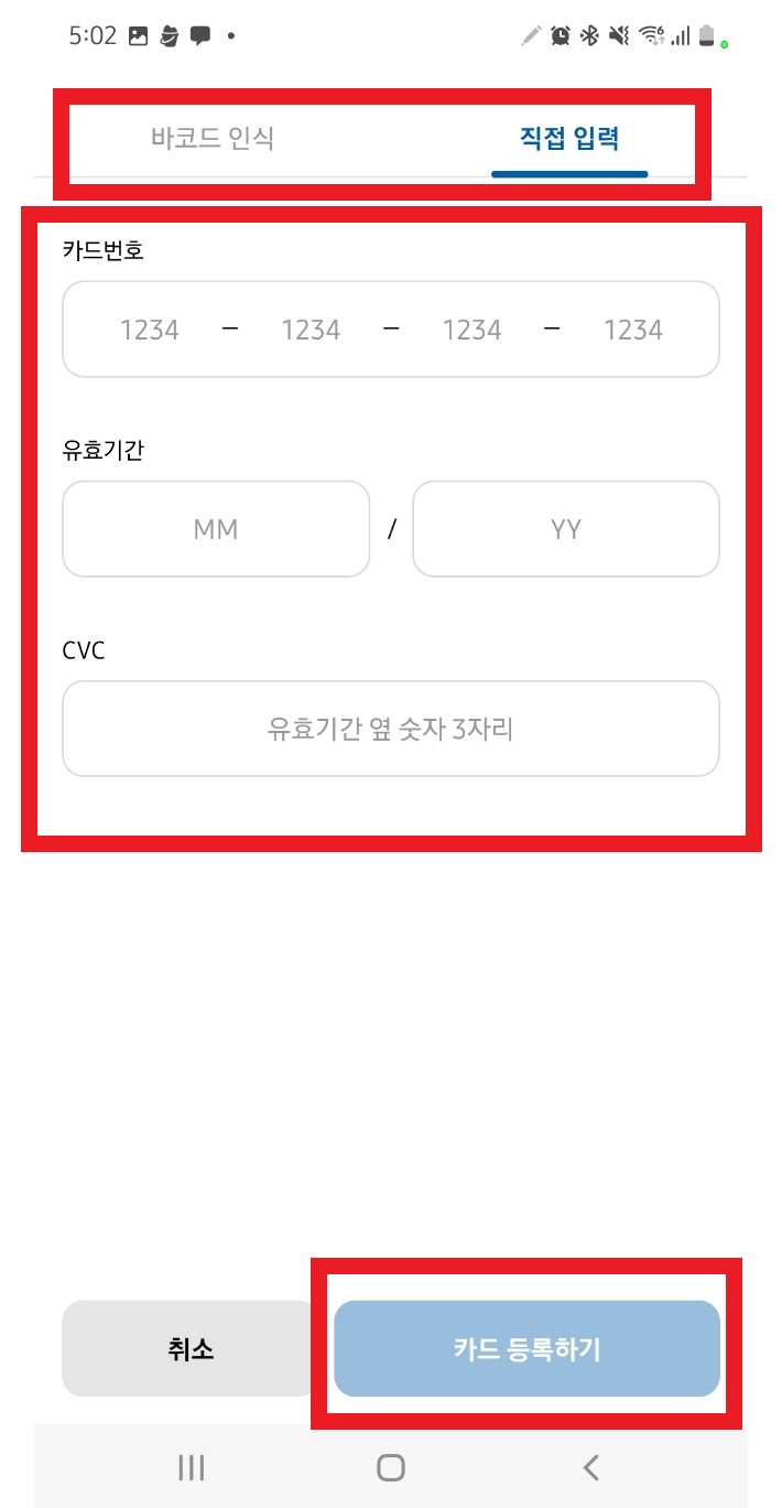 6. 카드정보를 입력하고 카드를 등록합니다.