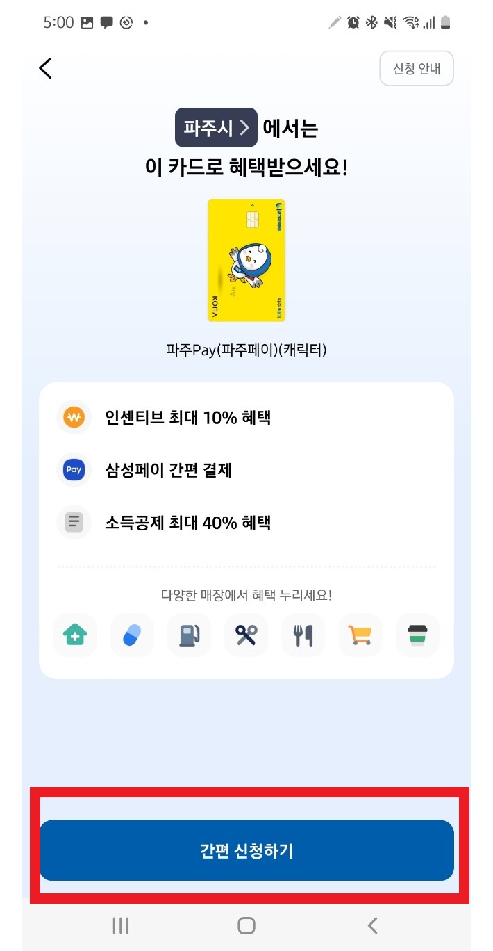 2. 파주페이 카드 '새로 신청하기'를 선택합니다.