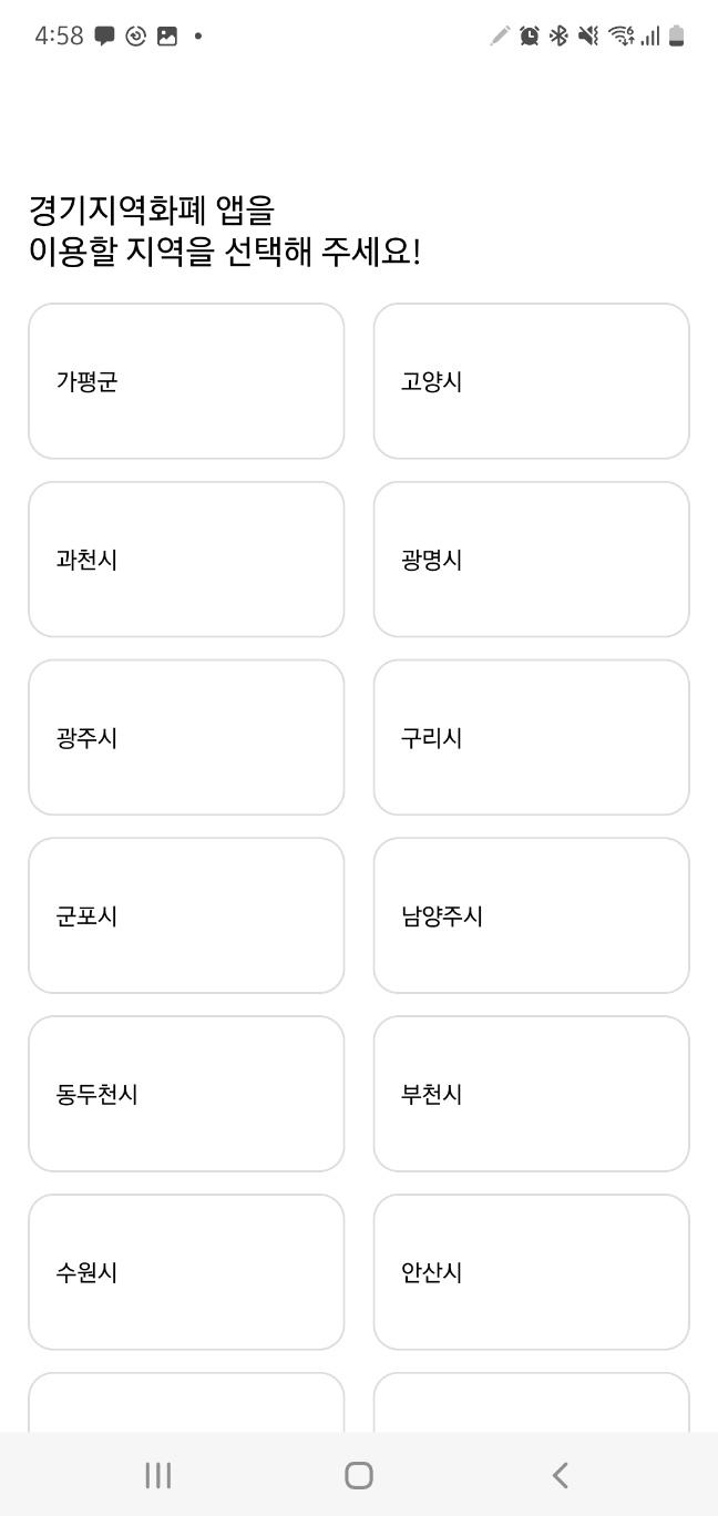 3. 경기지역화례 앱에서 지역을 선택하고 '간편신청하기'를 누릅니다.
