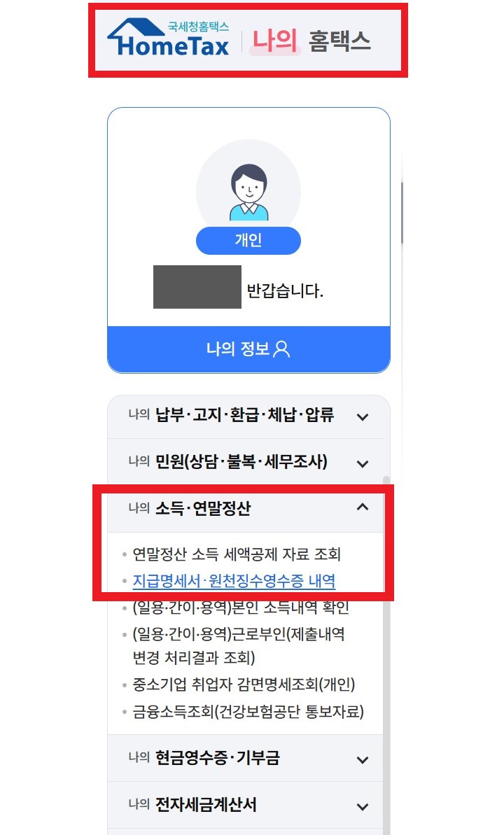 홈택스에서 원천징수 영수증 발급받는 방법