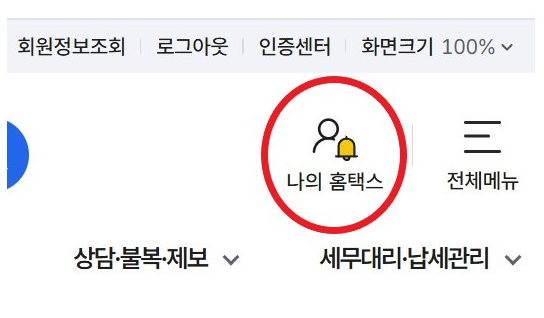 오른쪽 상단의 나의 홈택스에 들어갑니다.