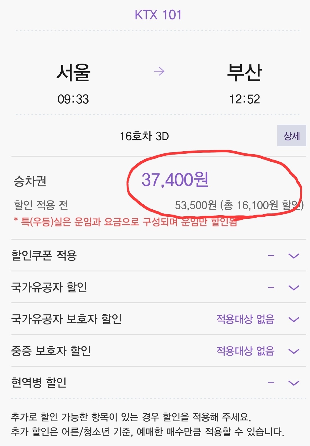 할인 적용 열차