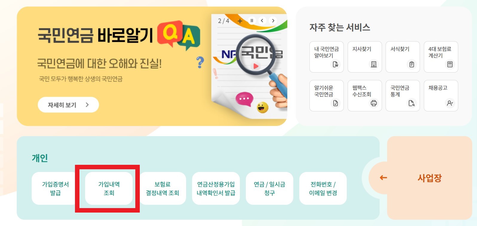 - 실업크레딧 납부내역과 연금보험료 상세내역도 확인할 수 있습니다.