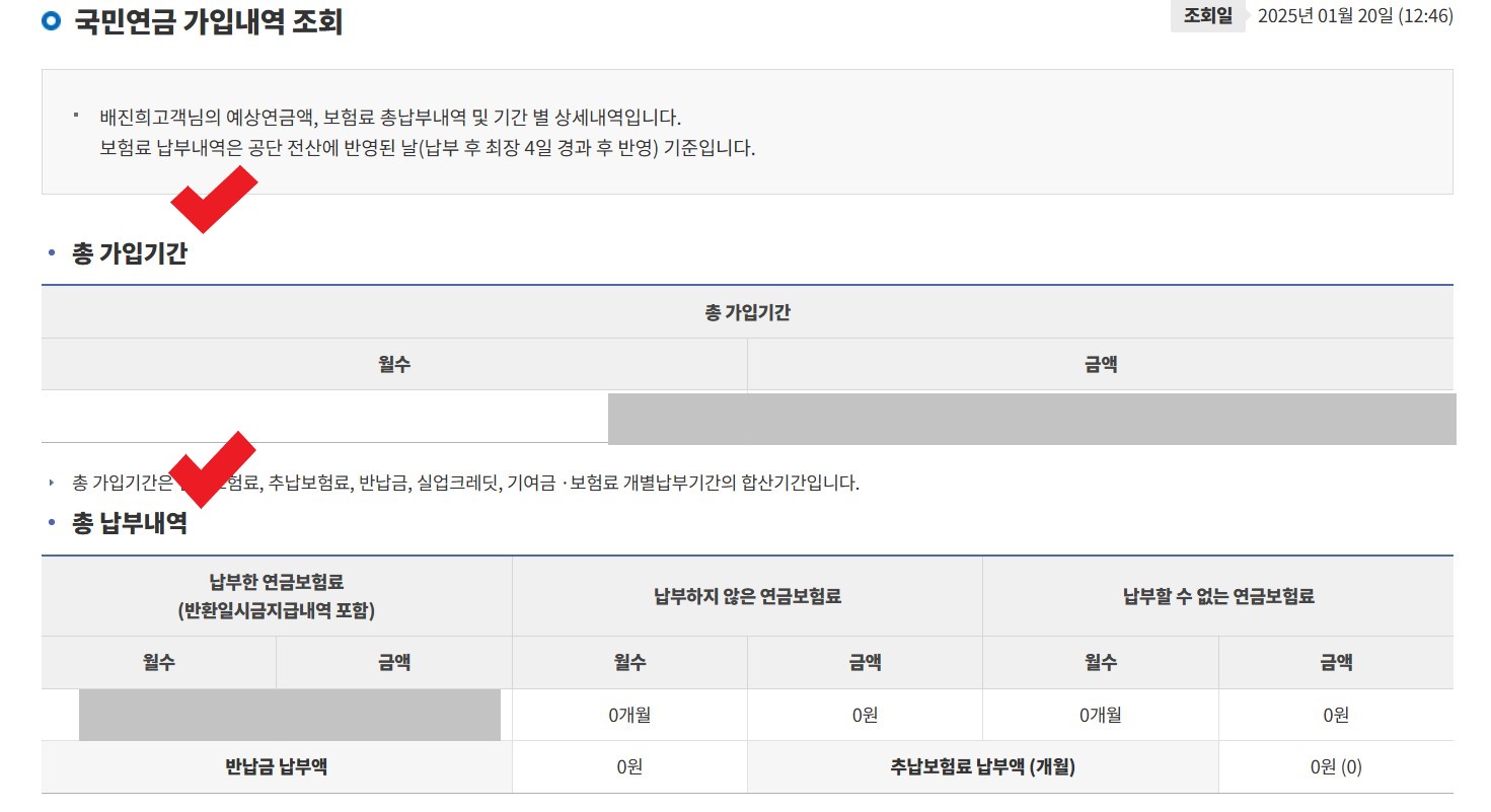 - 종 가입기간, 총 납부액을 조회할 수 있습니다.