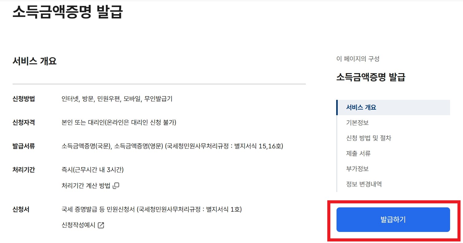 소득금액증명원 조회, 발급 방법