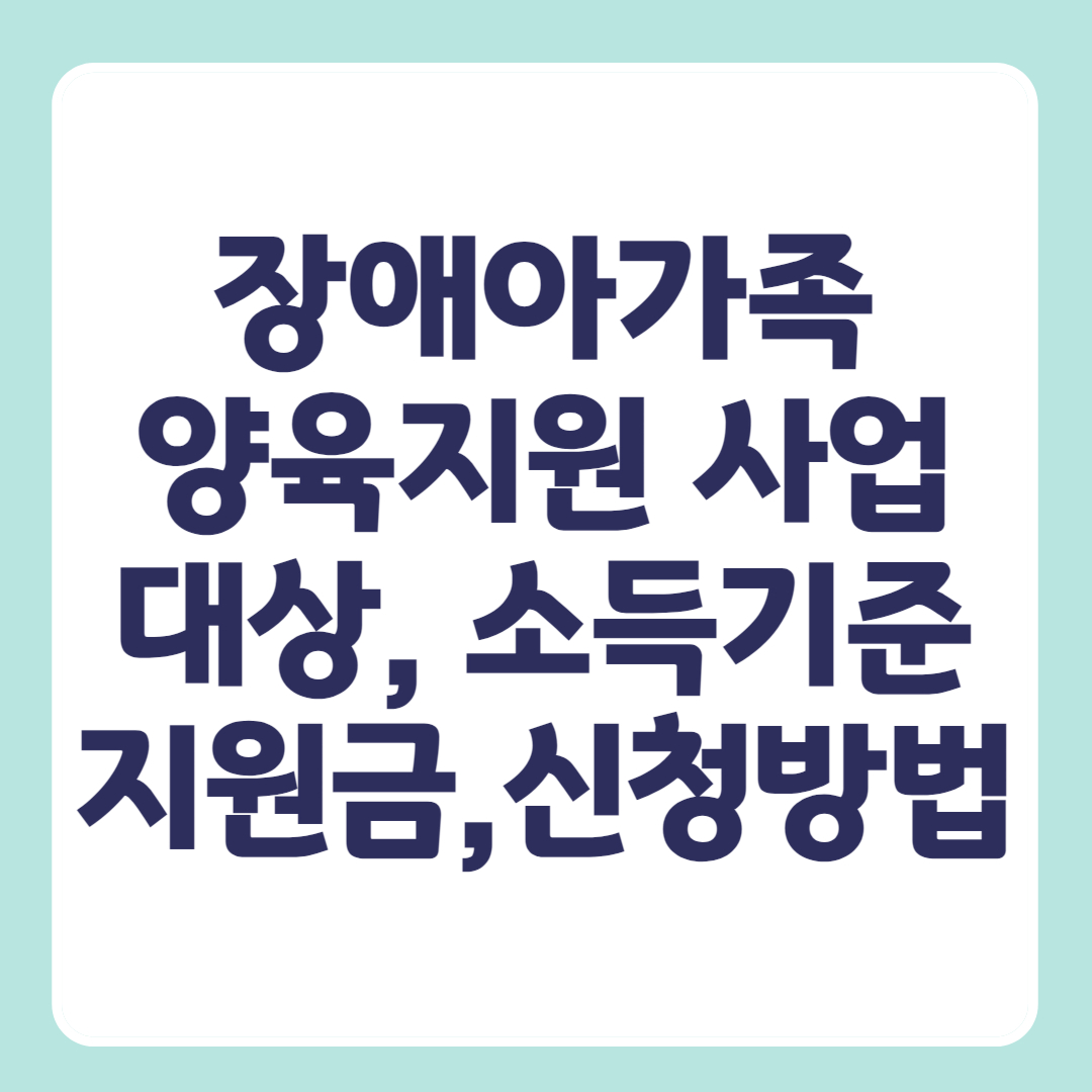장애아 가족 양육지원 사업은 장애아동을 양육하는 가정의 경제적, 정서적 부담을 경감시키고, 양육자에게 사회활동의 기회를 제공하기 위한 복지 서비스입니다. 장애아 가족들에게 실질적인 도움이 될 수 있기를 바랍니다.