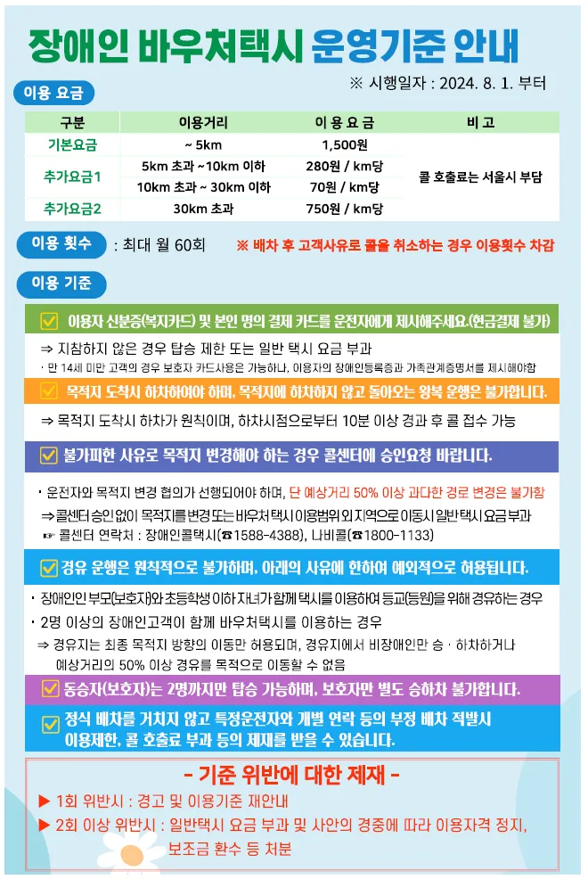 이와 같이 장애인콜택시는 이제 더 넓은 지역에서 이용할 수 있으며, 동승 인원도 더 유연하게 조정할 수 있습니다.