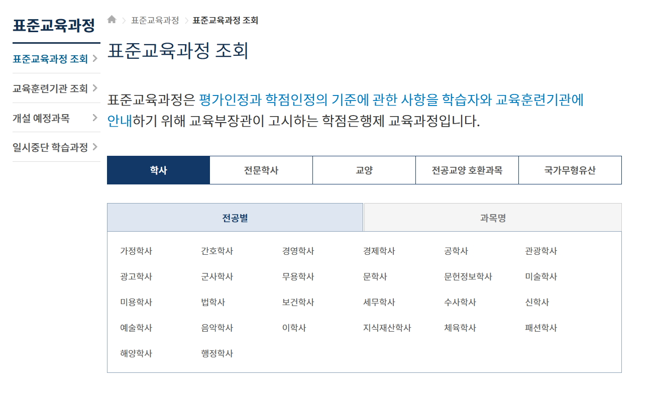 학점은행제 학위 과정